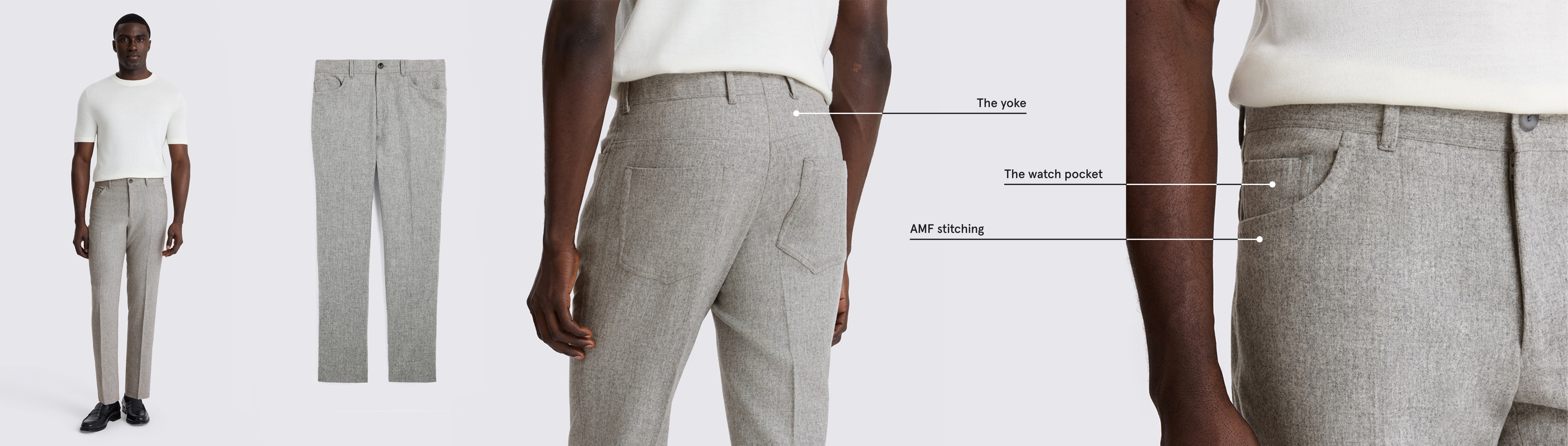 Featuring the signature five-pocket design and flattering yoke of denim jeans. Drawing on over 170 years of material authority, 5-Pocket is shaped to a contemporary profile from soft and breathable wool flannel.