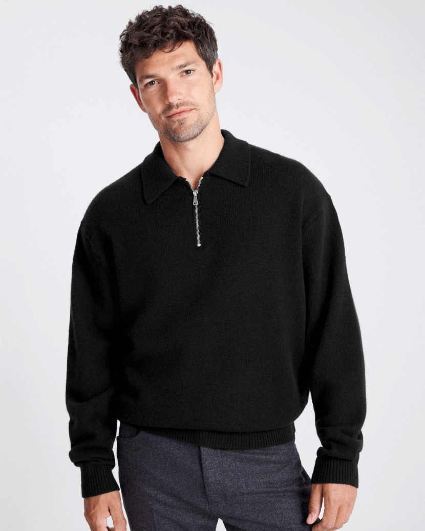 The original cold-weather fibre, wool naturally breathes and insulates at the same time. Our zipped polo shirt in pure wool and expanded collection of Merino-blend knits are surefire winter layering staples when the mercury drops outside, but the office heating is on full-blast.