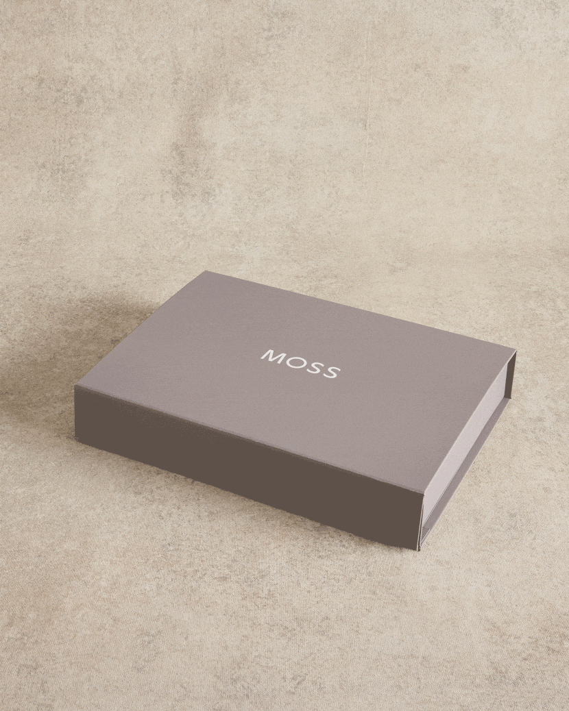 Make it a gift with a Moss gift box, the stress-free way to wrap up cashmere, socks, ties and accessories. And because £1 from every box goes to Centrepoint, it gives back too.