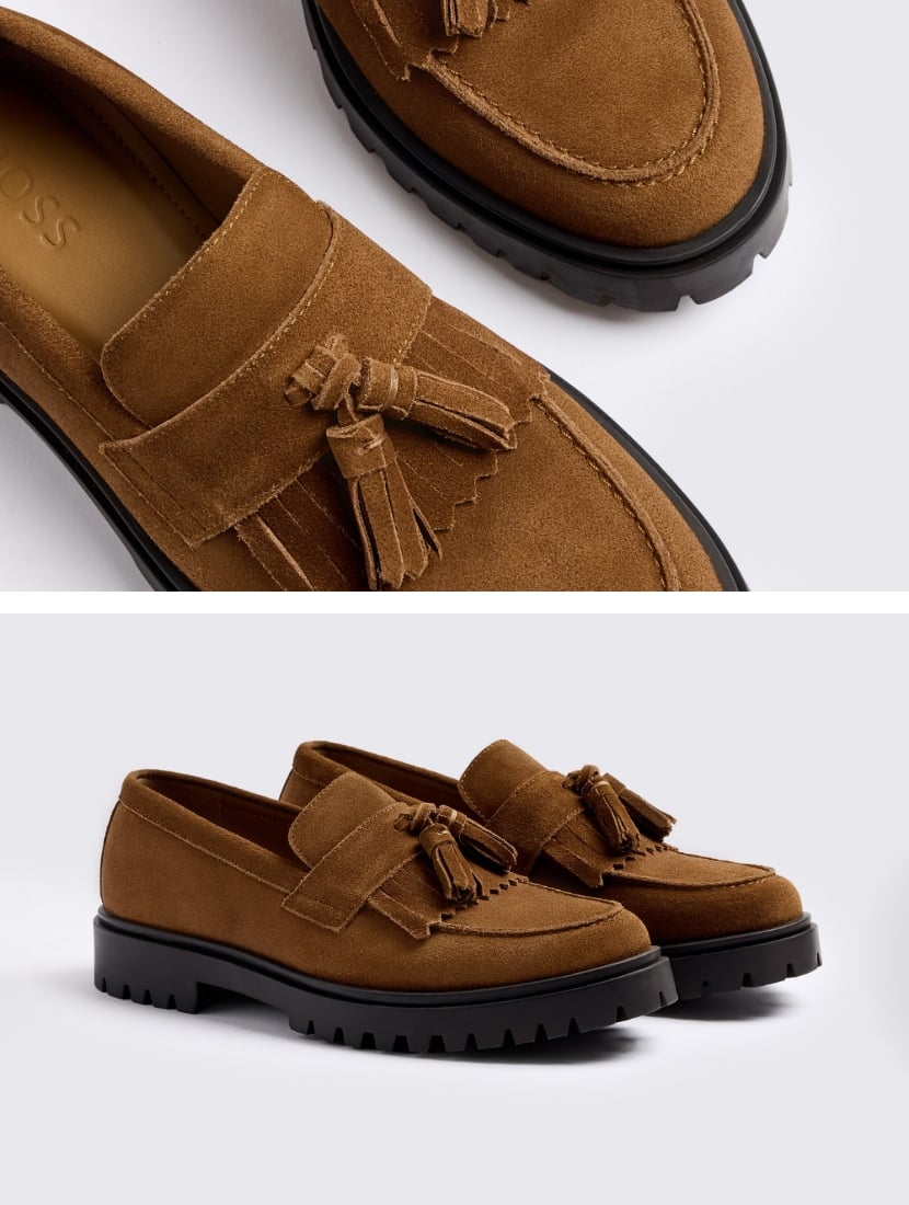 Our AW25 shoe lineup is defined by these chunky treads along with colorways that reflect the collection’s focus on natural tones. These are styles that combine classic design details on the upper – tasseled loafers, fringes, moc-toes – with heavy duty, lugged soles that can handle harsh weather and high step counts.