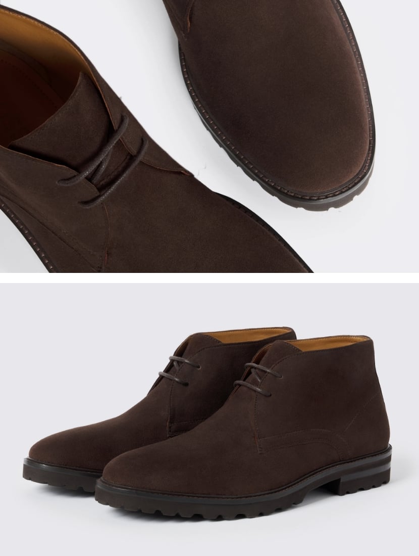 A close relative of the desert boot (its summertime cousin), our brown chukka is a sturdy choice for layered looks this season. The construction, a minimal silhouette that finishes at the ankle, offers a sharp alternative to trainers or an easy way to soften a formal outfit.